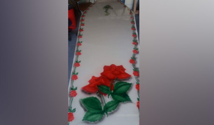 Finely polished to shine like marble decorated with roses.
