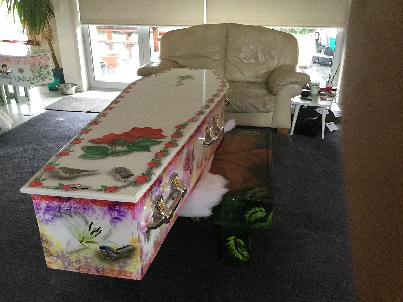 Donna set up the Club 5 years ago and in year 2019 we have finally received Charity status.We work alongside the Bishopdale Menzshed who make the Caskets and Angel boxes for us. Donna is responsible for the painting and dressing of the adult Caskets. She is also responsible for communicating , advising and helping people achieve the Caskets for themselves or a family member. She can be contacted on her mobile 021360835